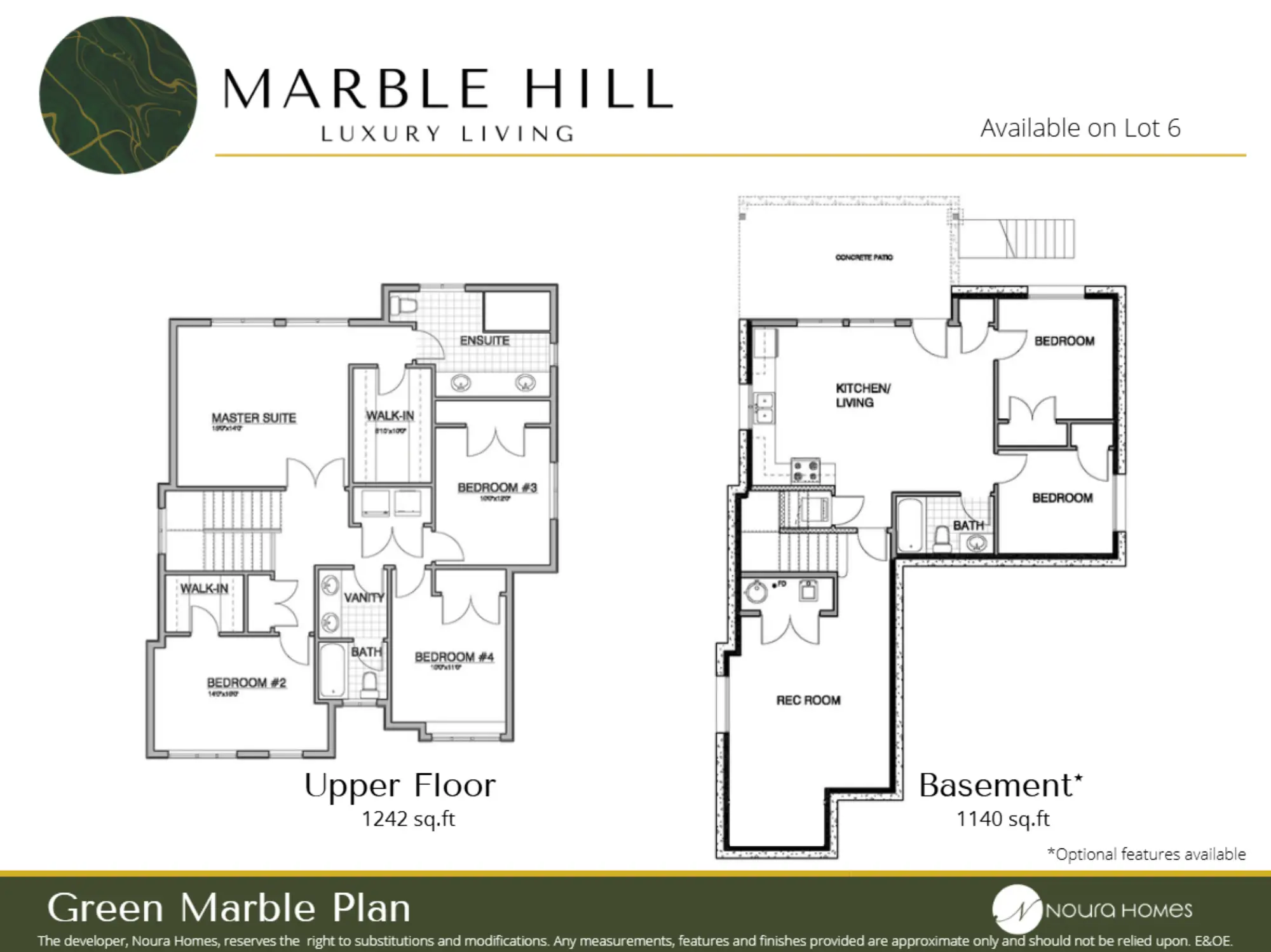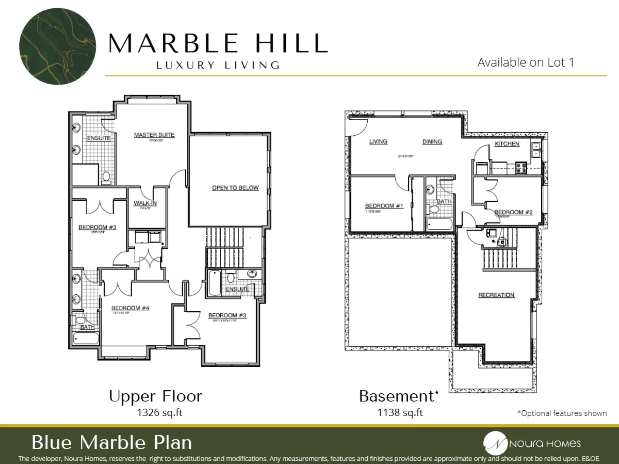 With up to 3,500 sq. ft. of thoughtfully planned living space, each 4 to 6-bedroom home is built for families seeking room to grow, entertain, and thrive. Energy-efficient systems, elegant finishes, and customizable design options reflect Noura Homes' enduring commitment to craftsmanship and sustainability. At Marble Hill, you'll find more than just a home; you'll discover a community where modern luxury meets nature, and every detail is designed to help your family flourish.